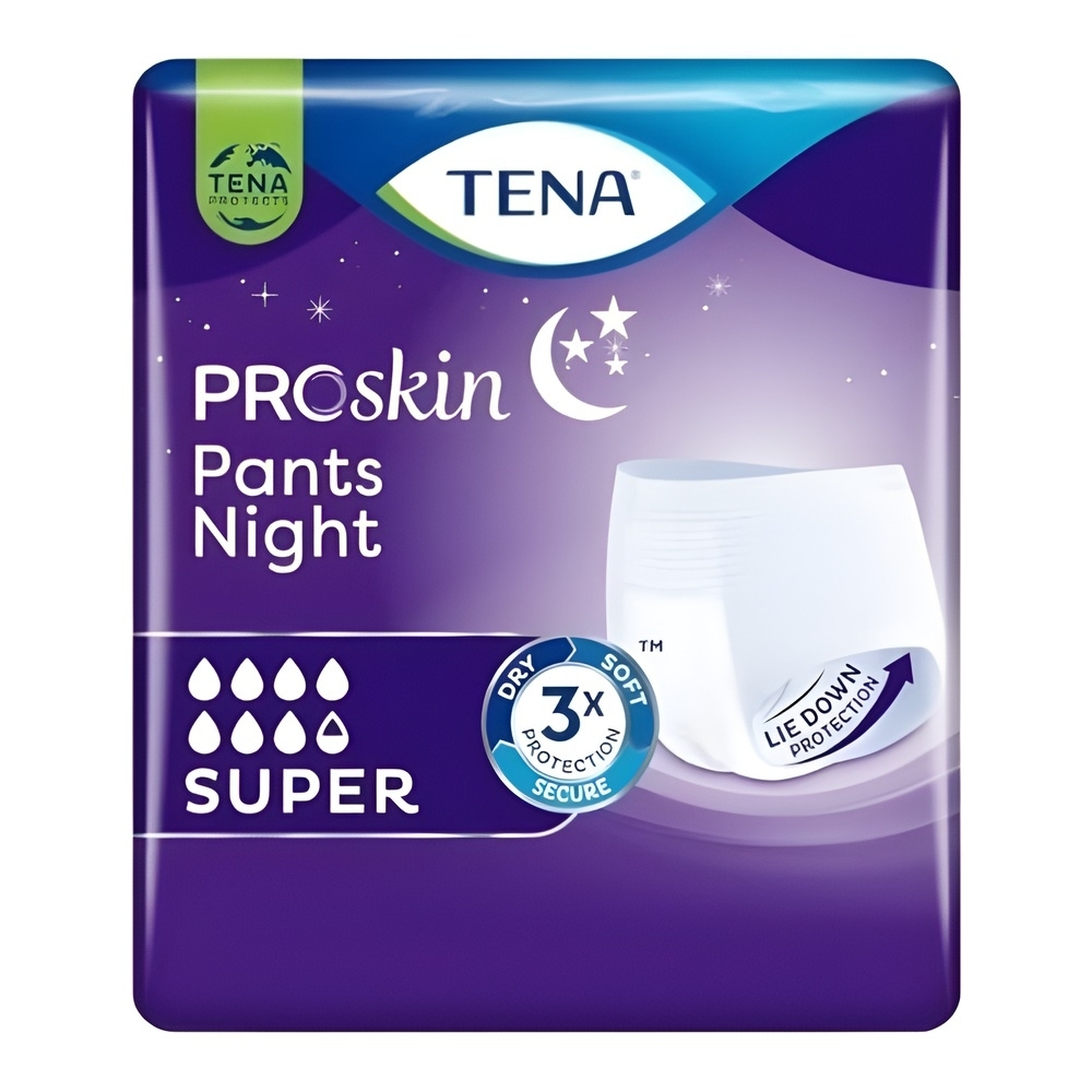Tena ProSkin Pants Night Super Large, geniş bel ve kalça ölçülerine sahip olup, özellikle gece yatarken idrar kaçırma problemi yaşayan bireyler için İsveç medikal kalitesiyle tasarlanmış premium bir gece külodudur. Sıradan emici külotların aksine, yatış pozisyonuna özel olarak arkaya doğru genişletilmiş emici bölgesi sayesinde belden ve sırttan sızıntı riskini sıfıra indirir. “Super” seviye yüksek emiciliği ve cildi koruyan ProSkin teknolojisi ile hastanıza deliksiz, kuru bir gece uykusu sağlarken; esnek Large kalıbı vücudu sıkmadan, konforla sarar.